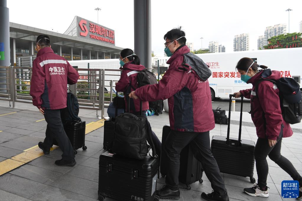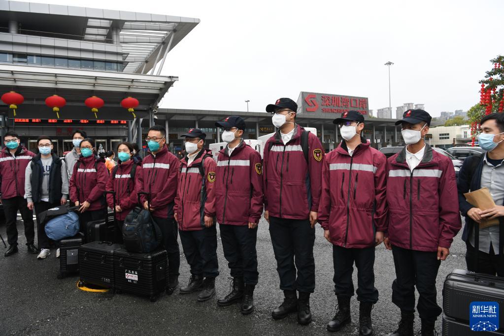2月17日,內地支援香港抗疫流行病學(xué)專(zhuān)家組在深圳灣口岸集結。新華社記者 梁旭 攝
