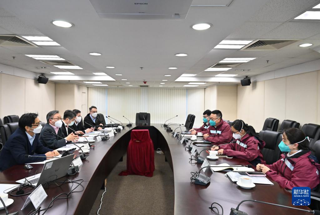 2月20日,內地專(zhuān)家組在特區政府衛生署代表陪同下到訪(fǎng)檢疫中心工作小組,了解特區政府在檢疫隔離方面的工作。新華社發(fā)