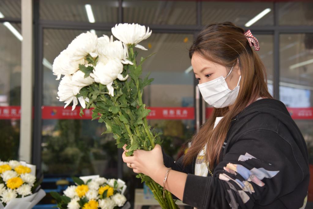 在眾多花店中,趙蕊的花店頗受歡迎,早上8點(diǎn)擺上的近5000枝菊花,中午剛過(guò)就賣(mài)了一大半?!耙酝嫉猛砩?點(diǎn)關(guān)店,今天估計6點(diǎn)就能賣(mài)完回家咯?!彼f(shuō)。