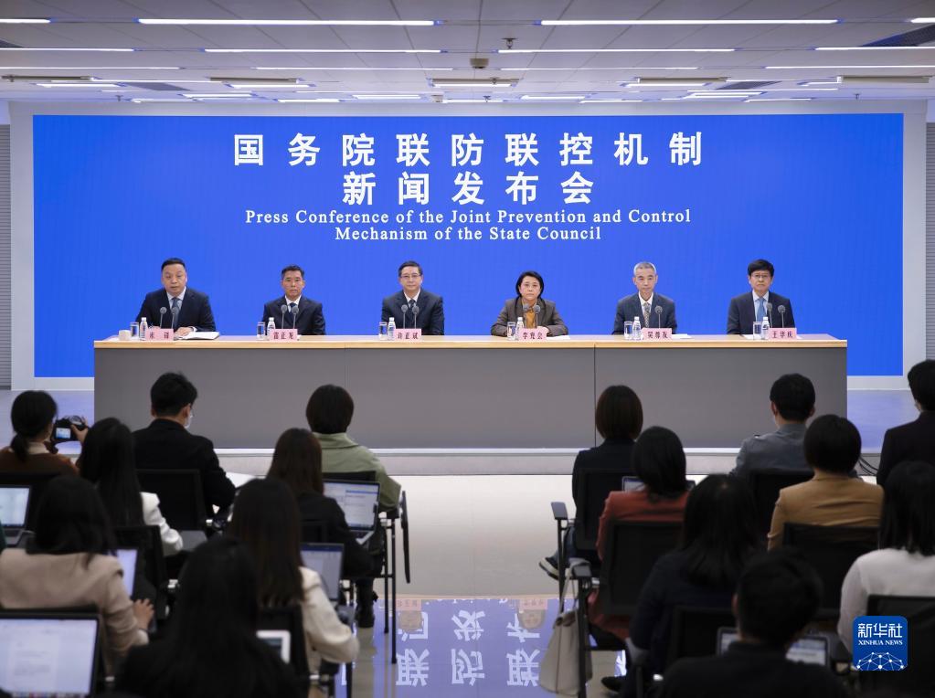4月12日,國務(wù)院聯(lián)防聯(lián)控機制在北京召開(kāi)新聞發(fā)布會(huì ),國家發(fā)展改革委、商務(wù)部、國家衛生健康委相關(guān)司局負責同志和有關(guān)專(zhuān)家出席,介紹從嚴從實(shí)抓好疫情防控工作有關(guān)情況,并回答媒體提問(wèn)。新華社發(fā)(楊佳 攝)