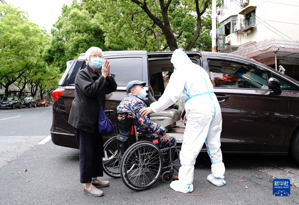 上海閔行區古美社區衛生服務(wù)中心司機馮守光把血透患者和家屬送回家(4月18日攝)。新華社記者 張建松 攝