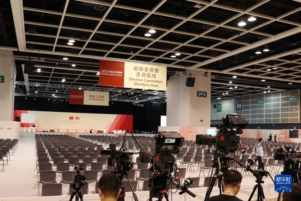 這是5月8日拍攝的香港會(huì )議展覽中心的中央點(diǎn)票站兼新聞中心。新華社記者 李鋼 攝