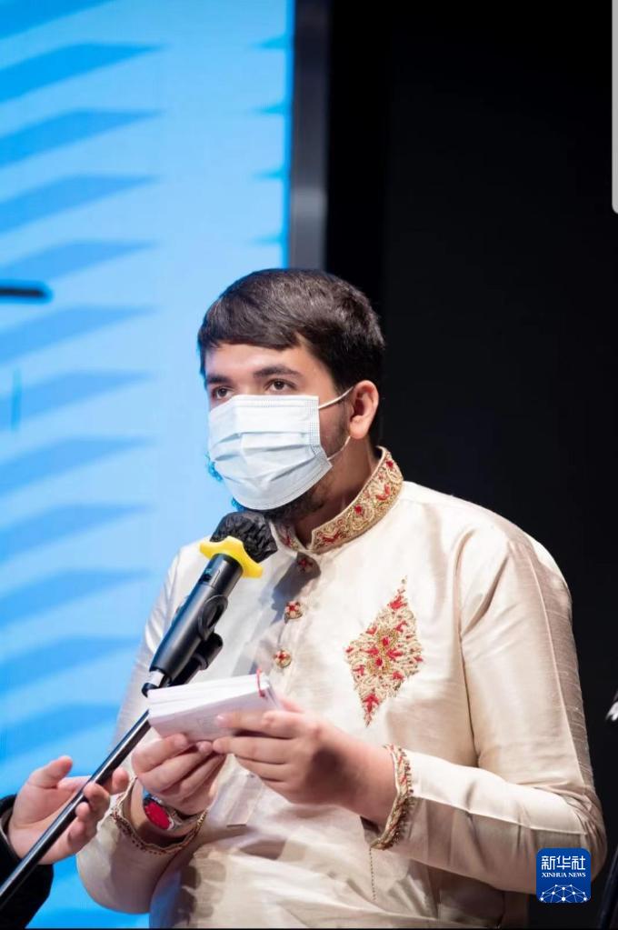 巴基斯坦小伙杜森美在主持公益團體“民族共融關(guān)愛(ài)中心”的主題活動(dòng)(2021年12月25日攝)。新華社發(fā)