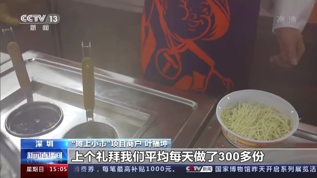 “攤上小市”項目商戶(hù) 葉福坤:房租不用我們出,沒(méi)有壓力,什么材料都是平臺提供,我們負責出餐就行了,上個(gè)禮拜我們平均每天做了300多份,有時(shí)候我們兩個(gè)人忙不過(guò)來(lái),他們公司還會(huì )派人過(guò)來(lái)幫忙。