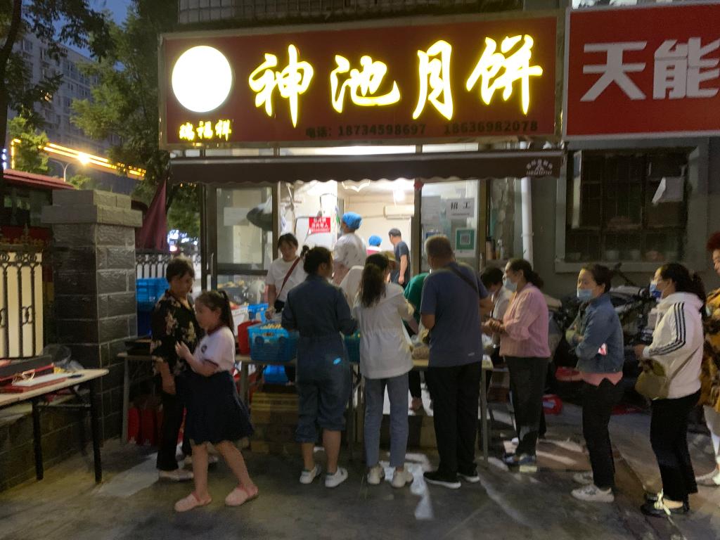 9日晚上,前來(lái)排隊的顧客購買(mǎi)神池月餅。新華社記者 魏飚 攝