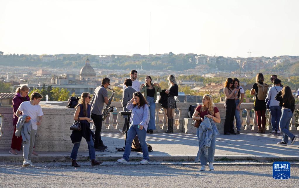 11月11日,游客聚集在意大利羅馬的蘋(píng)丘觀(guān)景臺。