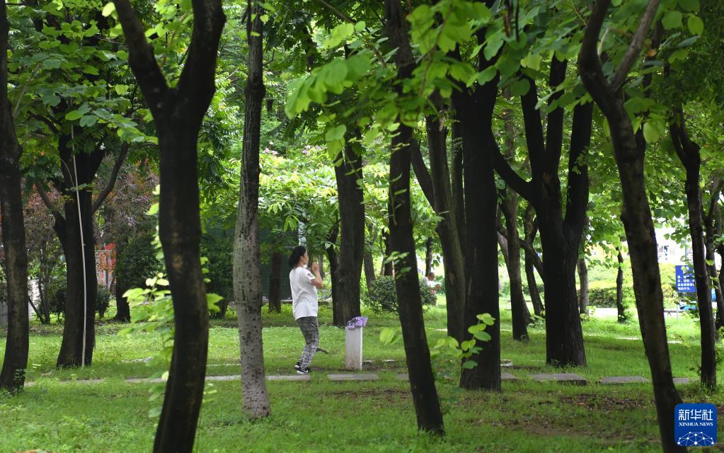 6月23日,市民在廣州珠江邊的樹(shù)林里鍛煉。