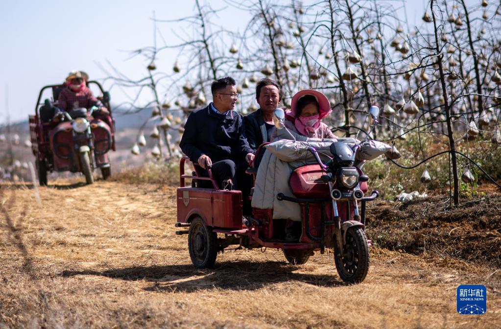 全國人大代表袁海波(右三)在云南省曲靖市馬龍區一種植基地了解務(wù)工人員就業(yè)需求(2月11日攝)。新華社記者 江文耀 攝