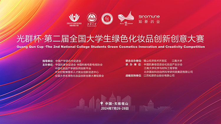 光群杯·第二屆全國大學(xué)生綠色化妝品創(chuàng )新創(chuàng )意大賽總決賽及頒獎典禮暨2024中國化妝品產(chǎn)學(xué)研創(chuàng )新展將于7月26日至28日在江蘇無(wú)錫舉行。