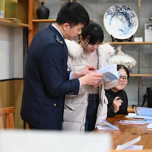 稅務(wù)工作人員講解減稅降費政策法規。新華社記者 林善傳 攝