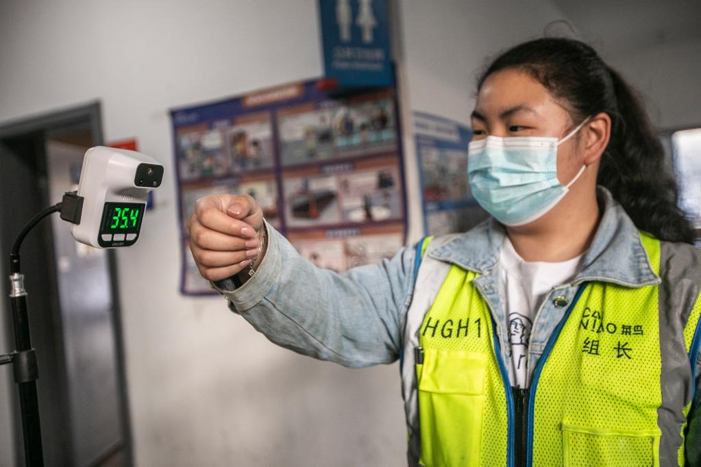 3月12日,菜鳥(niǎo)杭州下沙保稅倉工作人員在進(jìn)入園區前亮碼、測溫。(圖片由采訪(fǎng)單位提供)