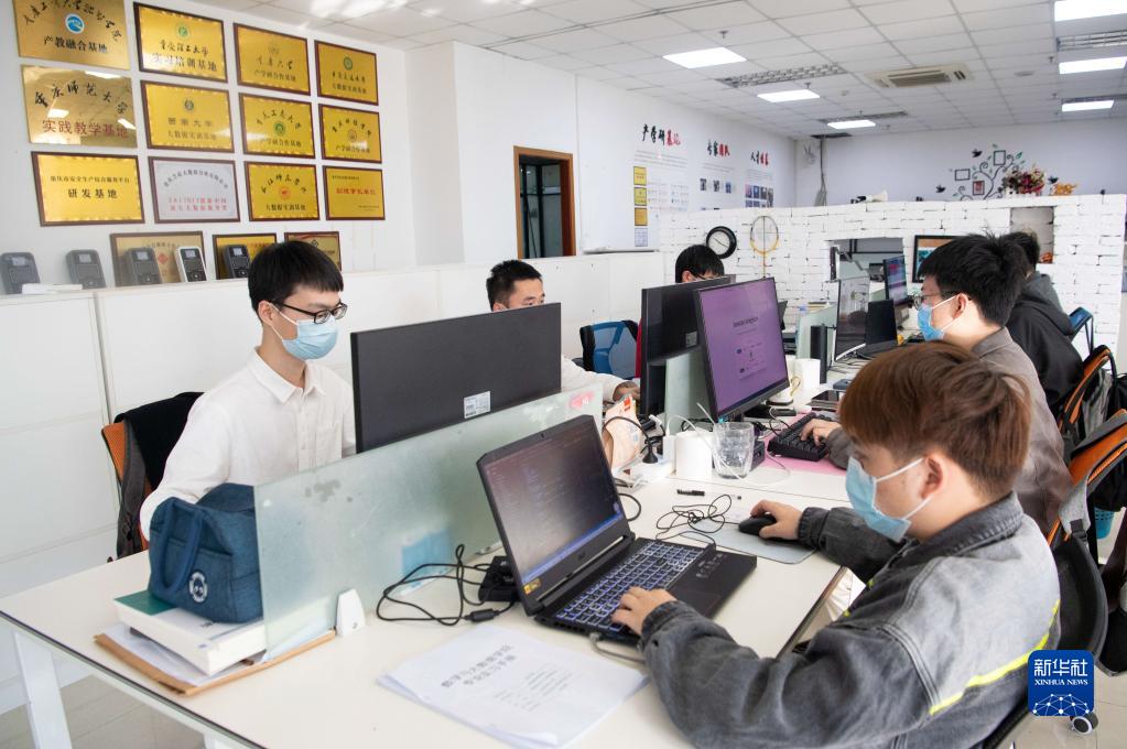 在位于重慶大渡口的“大眾創(chuàng )業(yè)萬(wàn)眾創(chuàng )新示范基地”內,大學(xué)畢業(yè)生和青年人才在一家名為重慶芝諾的大數據公司內工作(3月28日攝)。新華社記者 唐奕 攝