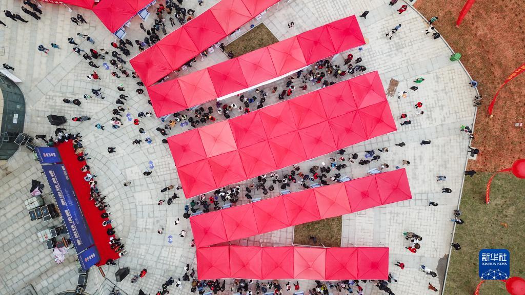 這是3月10日在長(cháng)沙望城經(jīng)開(kāi)區銅官工業(yè)園拍攝的招聘活動(dòng)現場(chǎng)(無(wú)人機照片)。新華社記者 陳澤國 攝