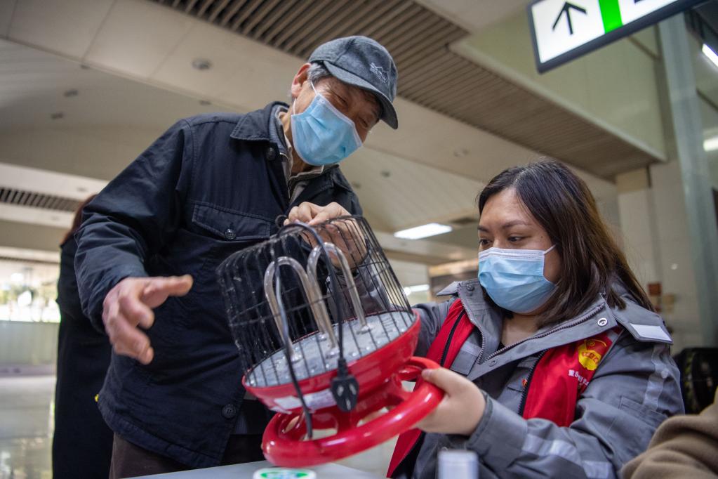 2022年3月5日,來(lái)自重慶軌道集團的志愿者在重慶軌道交通2號線(xiàn)新山村站站廳對市民送來(lái)維修的家用電器進(jìn)行登記。新華社記者 唐奕 攝