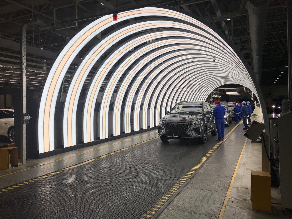 在上汽集團臨港乘用車(chē)工廠(chǎng),一輛輛整車(chē)正在下線(xiàn)。新華社記者周蕊 攝