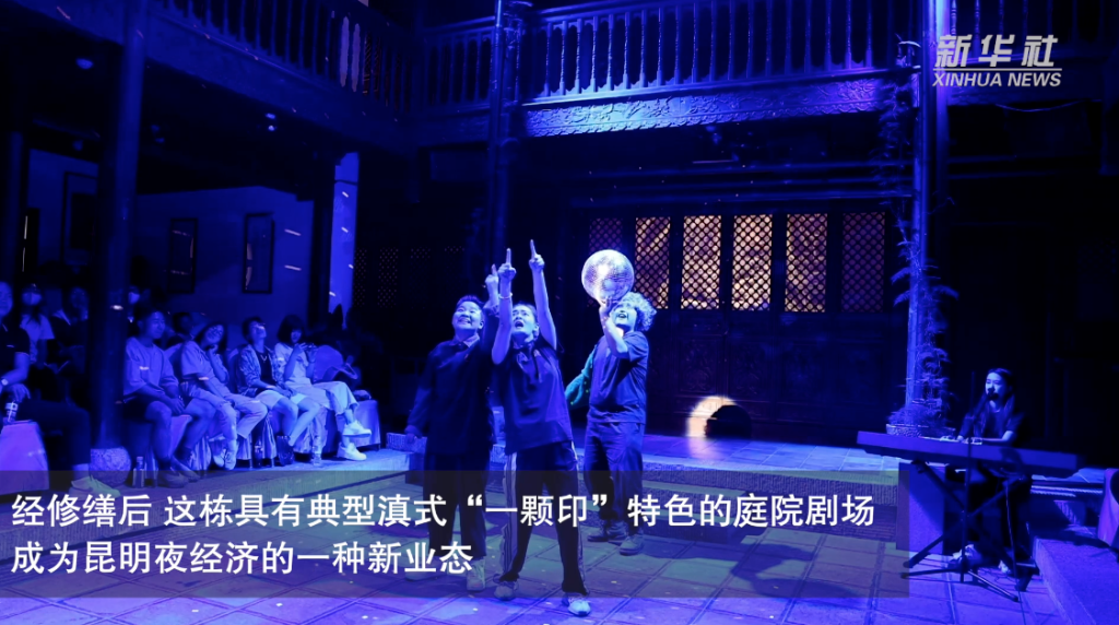云南昆明的“網(wǎng)紅夜市”南強街,不僅有琳瑯滿(mǎn)目的云南各色風(fēng)味小吃,還有“南強街八十八號”這一具有滇式“一顆印”特色的小劇場(chǎng),演出極具云南特色的滇劇、折子戲、即興喜劇等,逐漸成為市民夜生活的新選擇,為夜經(jīng)濟的發(fā)展注入新活力。
