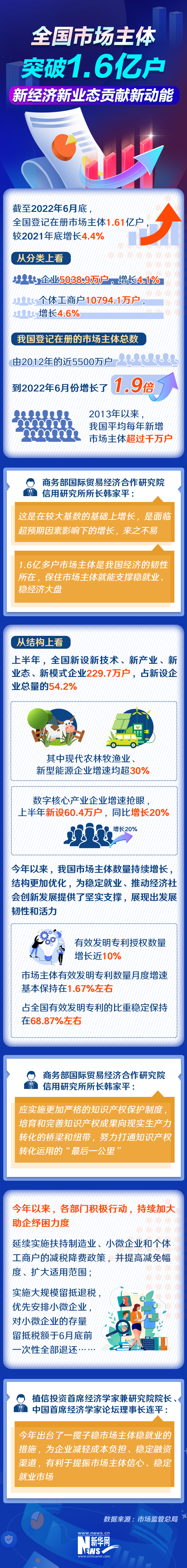 今年上半年,新經(jīng)濟新業(yè)態(tài)市場(chǎng)主體增長(cháng)較快,增幅明顯高于總體水平,為推動(dòng)高質(zhì)量發(fā)展提供了新的動(dòng)能。