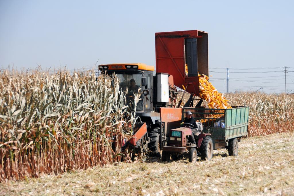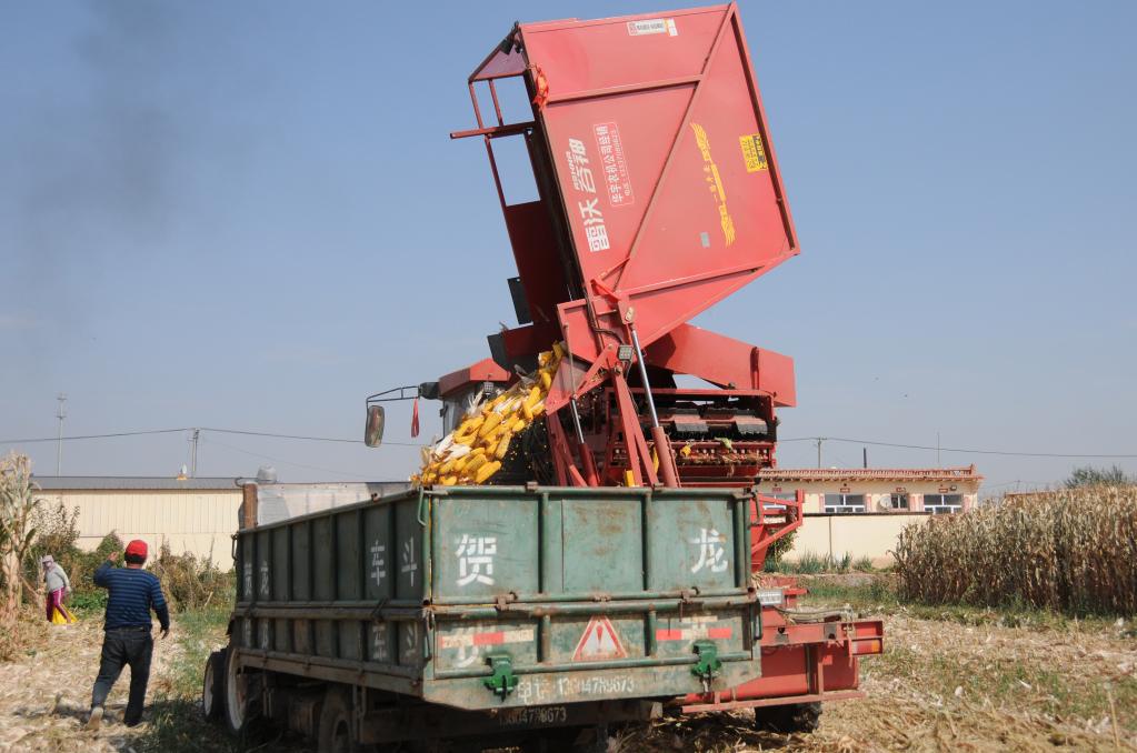 臨河區干召廟鎮黃濟村村民收割玉米。(新華社記者李云平 攝)