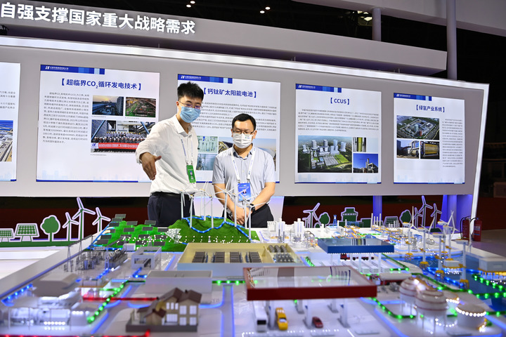9月3日,在2022中國(太原)國際能源產(chǎn)業(yè)博覽會(huì ),中國華能集團有限公司工作人員向參觀(guān)者介紹其綠氫產(chǎn)業(yè)系統。新華社記者 楊晨光 攝
