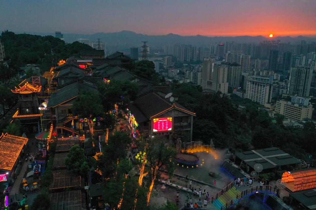 這是6月1日拍攝的重慶陶然居大觀(guān)園新國潮坊景象。新華社記者 王全超 攝