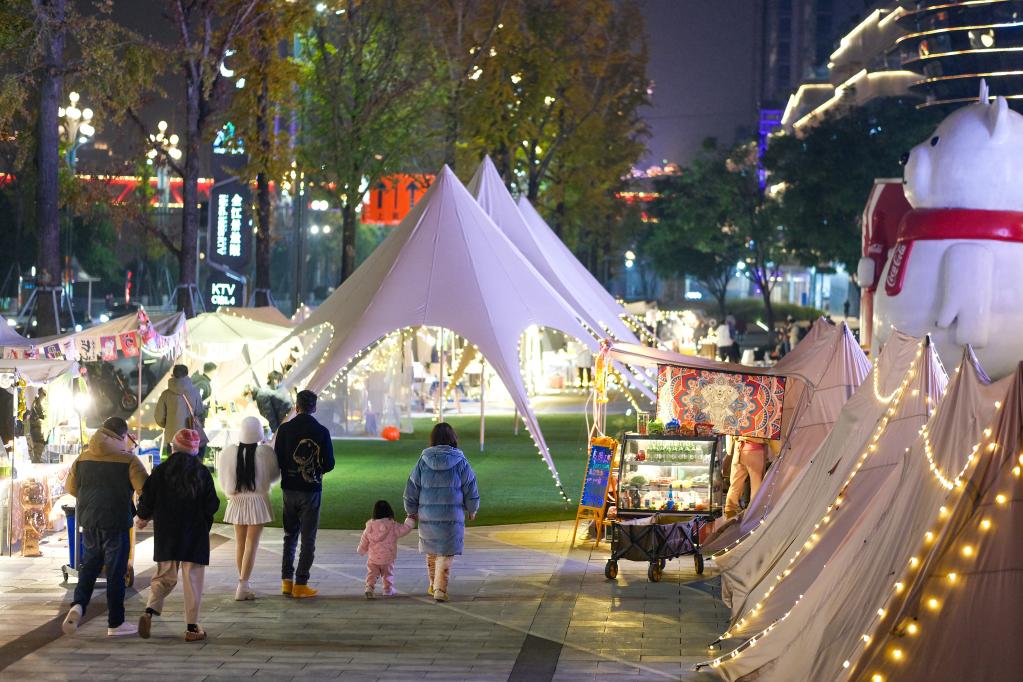 新華社重慶12月24日電(記者伍鯤鵬)煙熏火燎的夜宵攤位,琳瑯滿(mǎn)目的精美手辦……冬日的重慶市南濱路煙雨海棠公園彩虹集市恢復了久違的煙火氣,重新煥發(fā)出勃勃生機。市民們穿梭在一頂頂帳篷間購物消費與拍照打卡,再次感受著(zhù)不夜重慶獨特的魅力。