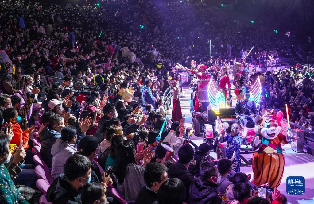 游客在廣州長(cháng)隆旅游度假區游園看馬戲表演(2022年12月31日攝)。新華社記者 劉大偉 攝