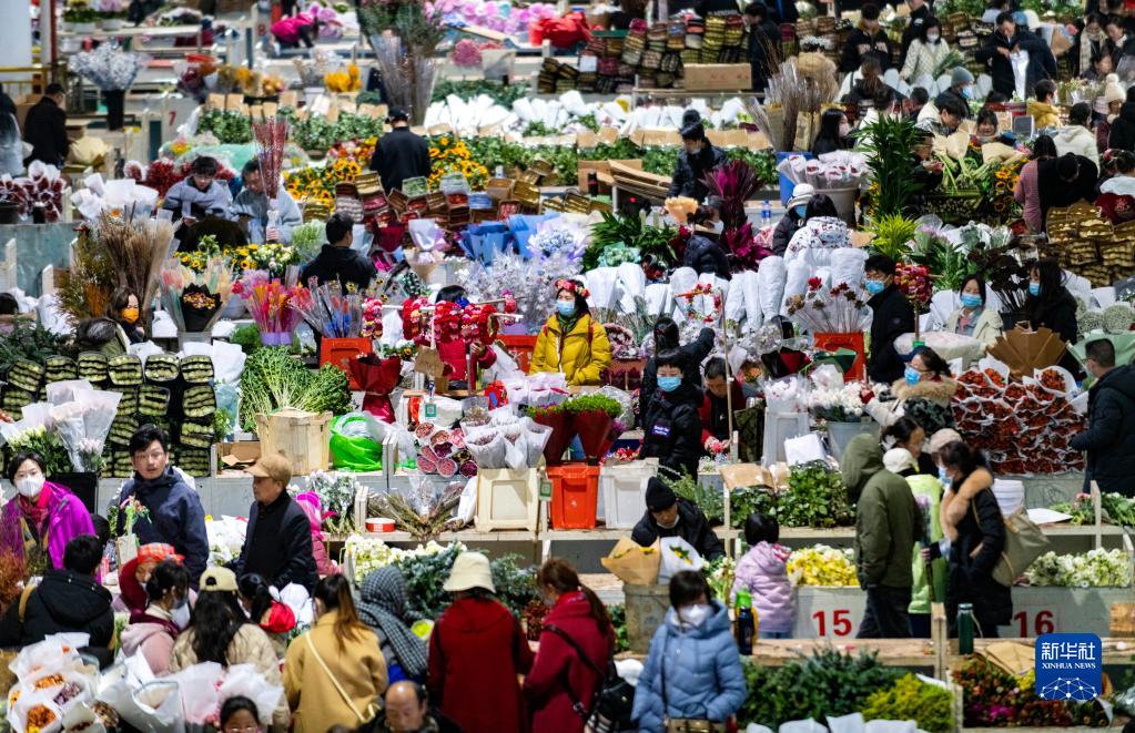 1月27日,人們在斗南花市內買(mǎi)花。當日是大年初六,位于云南省昆明市的斗南花市內人頭攢動(dòng),人們逛花市、買(mǎi)鮮花,歡度假期。新華社記者 陳欣波 攝