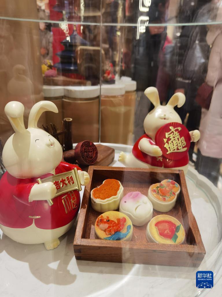 2月1日在北京稻香村“零號店”拍攝的“福兔獻瑞”系列糕點(diǎn)。 新華社記者 謝?,?攝