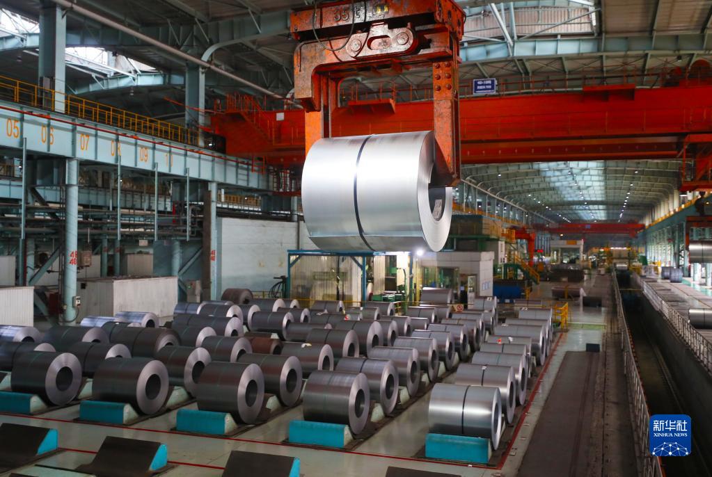 在本鋼冷軋廠(chǎng),吊車(chē)在吊裝鋼卷(2021年8月18日攝)。新華社記者 楊青 攝