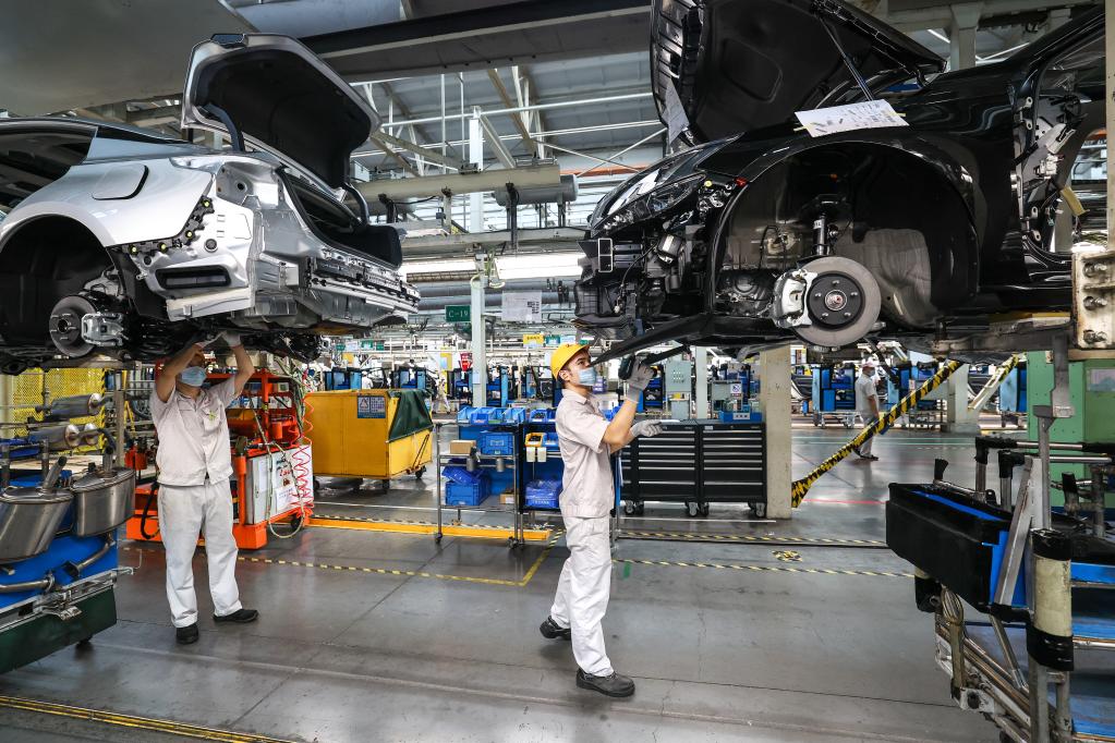 在襄陽(yáng)高新區的東風(fēng)日產(chǎn)襄陽(yáng)工廠(chǎng),工人們在生產(chǎn)線(xiàn)上忙碌。楊東 攝