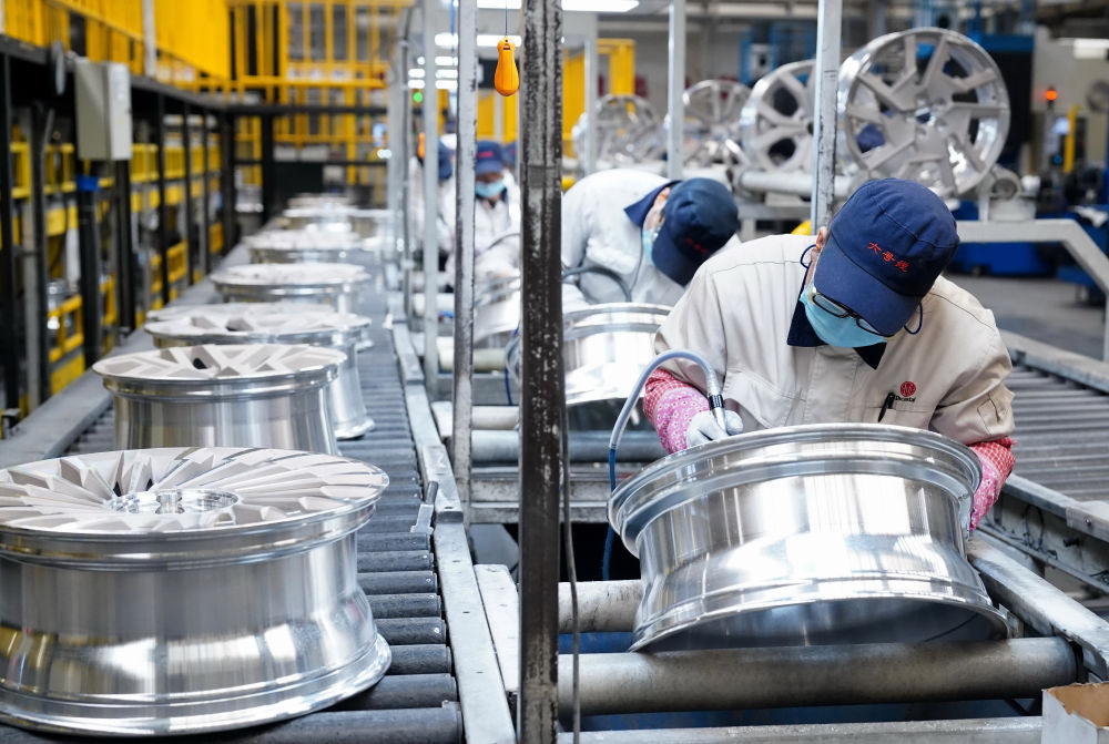 工人在秦皇島經(jīng)濟技術(shù)開(kāi)發(fā)區一家車(chē)輪企業(yè)的生產(chǎn)車(chē)間工作(2023年2月12日攝)。新華社記者 楊世堯 攝