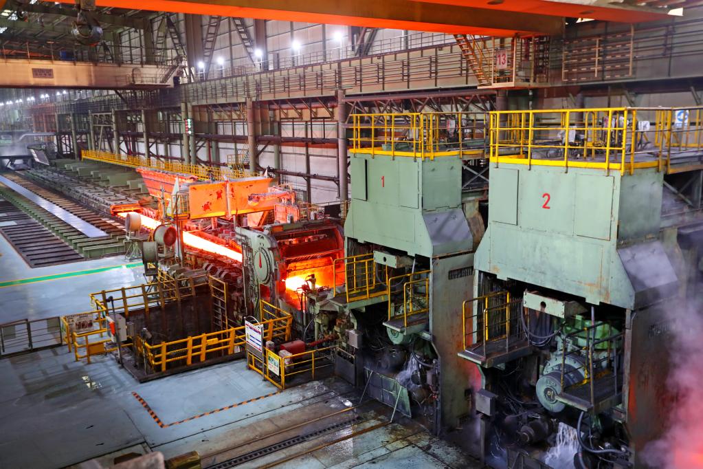 6月13日在廣東省湛江市東海島拍攝的寶鋼湛江鋼鐵有限公司生產(chǎn)車(chē)間內景。新華社記者龔兵 攝