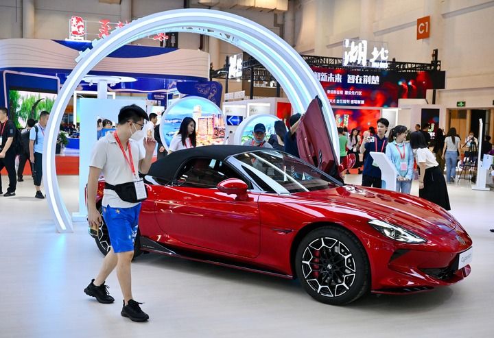這是9月8日在第二十三屆中國國際投資貿易洽談會(huì )展覽上拍攝的新能源汽車(chē)。新華社記者 姜克紅 攝