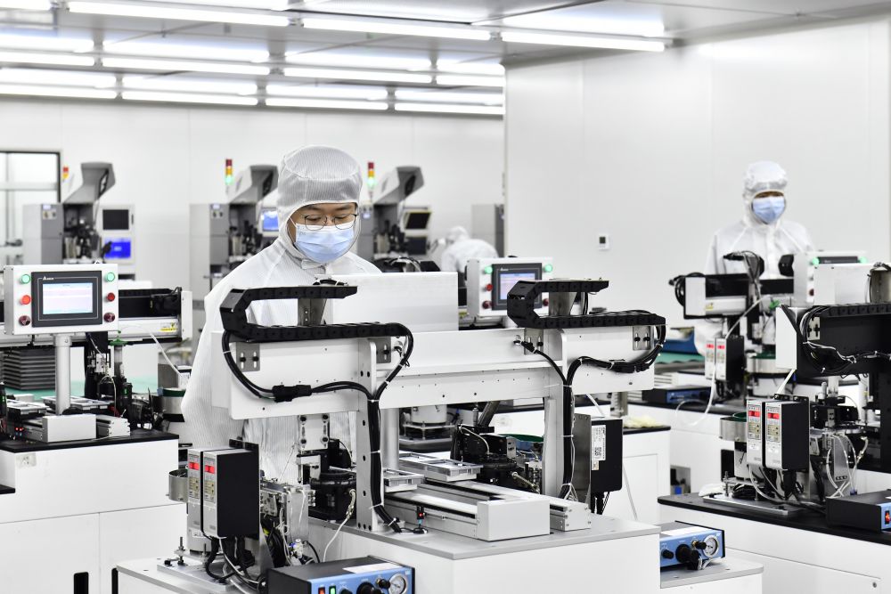 2023年6月29日,在山東省日照高新技術(shù)產(chǎn)業(yè)開(kāi)發(fā)區智慧微電產(chǎn)業(yè)園,工作人員在生產(chǎn)濾波器。新華社記者 郭緒雷 攝