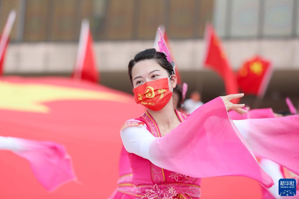 10月1日,香港市民在《我和我的祖國》的歌聲中起舞。新華社記者 吳曉初 攝