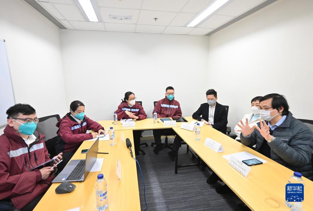 2月20日,內地專(zhuān)家組在特區政府衛生署代表陪同下到訪(fǎng)檢疫中心工作小組,了解特區政府在檢疫隔離方面的工作。新華社發(fā)