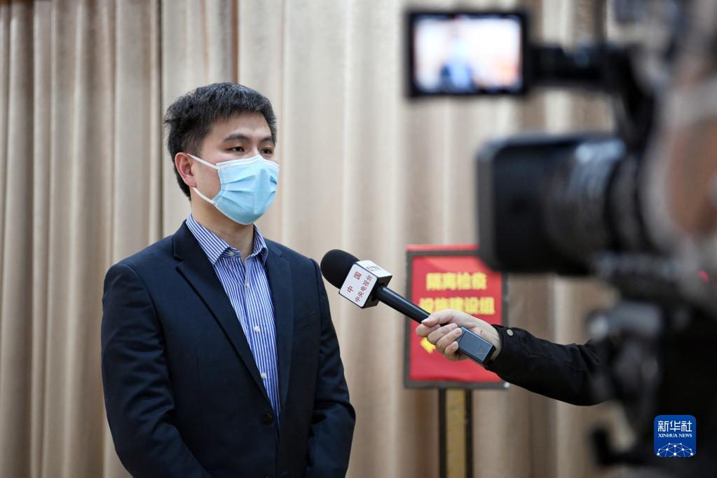 2月22日,內地支援香港抗疫工作專(zhuān)班隔離檢疫設施建設組成員謝暉接受媒體采訪(fǎng),介紹相關(guān)情況。新華社記者 梁旭 攝