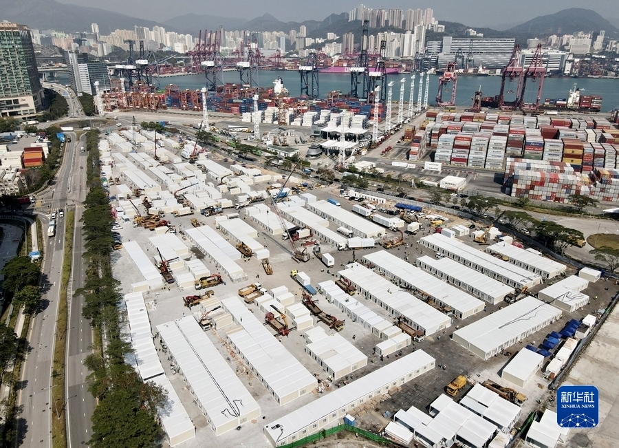 這是2月26日拍攝的香港青衣方艙醫院項目工地(無(wú)人機照片)。新華社發(fā)