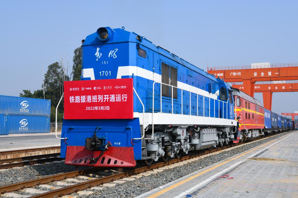 該援港班列共有9個(gè)貨卡,裝載的防疫物資包括新冠病毒檢測試劑盒110.656萬(wàn)人份、防護服20000件以及其他醫療用品。班列單程用時(shí)約35分鐘,主要運送防疫物資和生鮮產(chǎn)品,前期將以每天1列的發(fā)運頻率穩定運行,每列裝載18個(gè)集裝箱,后續將根據實(shí)際需求增加班次和貨柜數量。