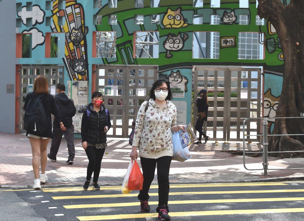 3月5日,在香港灣仔,市民佩戴口罩出行。新華社記者 盧炳輝 攝