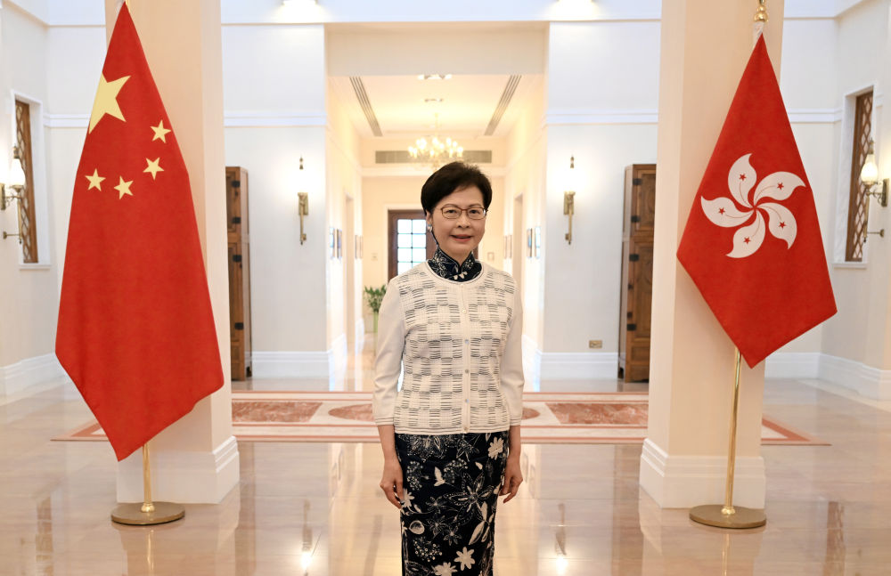 香港特區行政長(cháng)官林鄭月娥在禮賓府接受記者采訪(fǎng)。新華社記者 金良快 攝
