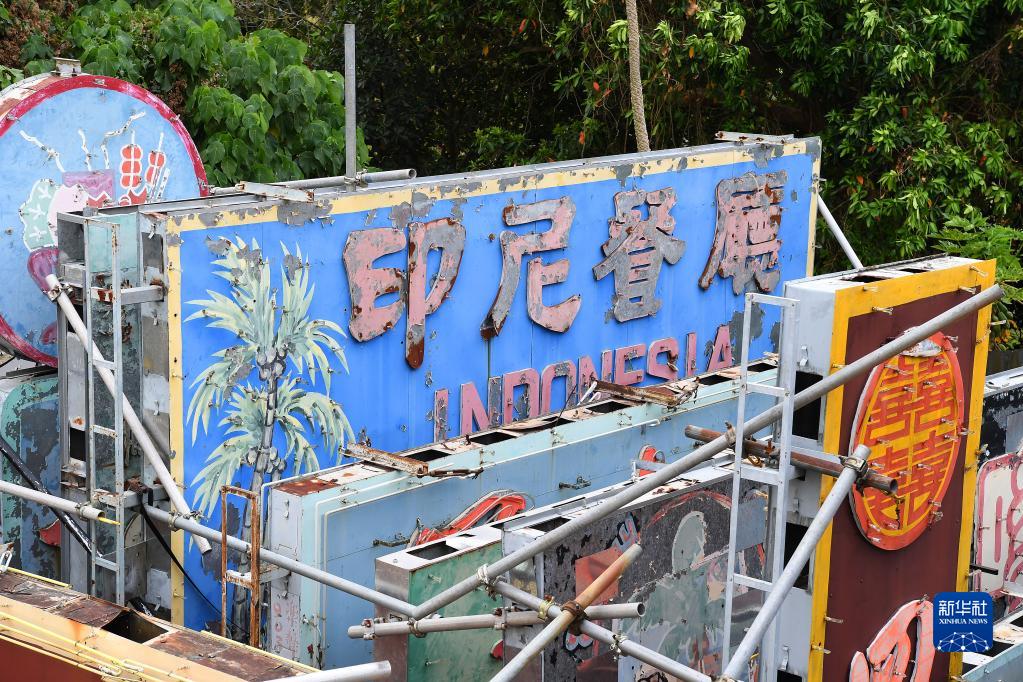 這是3月23日在霓虹招牌保育工作者陳倩文的“寶庫”中拍攝的“印尼餐廳”霓虹招牌。新華社記者 陳鐸 攝