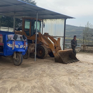 村民馬繼國將清理牛糞的推土機停放在自家農機工棚里。新華社記者王朋 攝