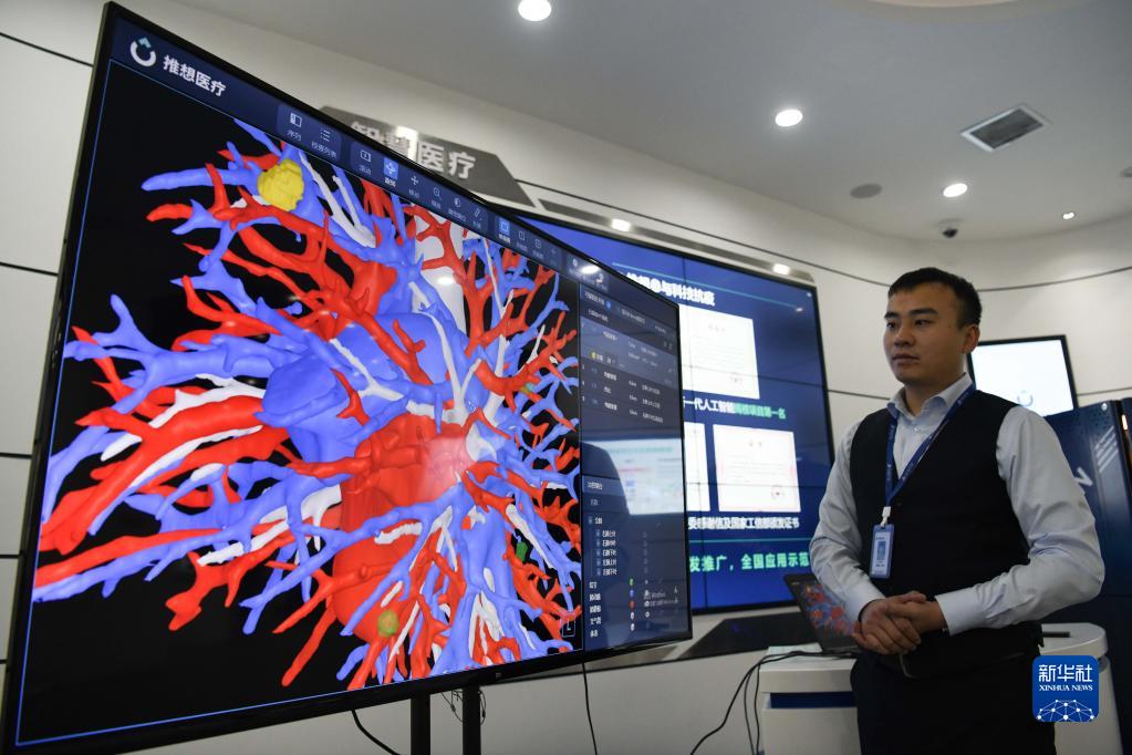 2021年12月24日,工作人員在位于安徽省合肥市西郊的中國聲谷體驗中心內介紹一款智慧醫療產(chǎn)品。新華社記者 張端 攝