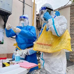 4月16日,復旦大學(xué)附屬中山醫院急診大廳外,醫護人員為患者進(jìn)行抗原檢測。新華社記者 袁全 攝