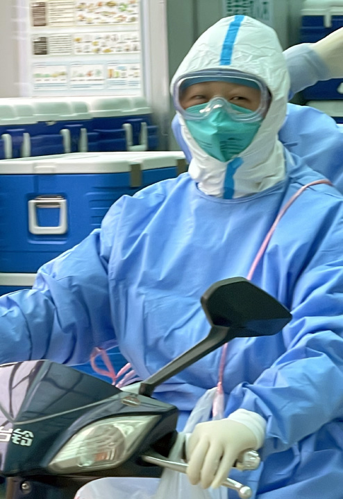 李培蕾騎電動(dòng)車(chē)去社區開(kāi)展核酸采樣。(受訪(fǎng)者供圖)