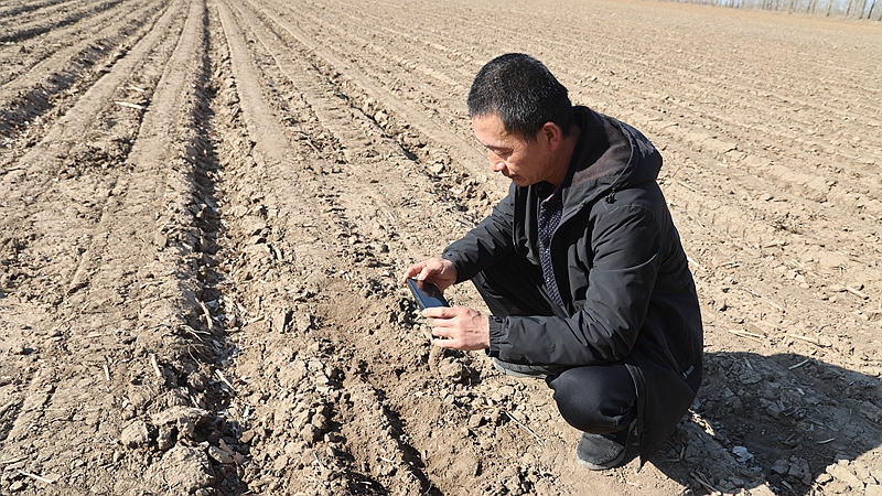 孫京軍正在為家庭農場(chǎng)聯(lián)合體成員錄制播種驗收情況視頻。(受訪(fǎng)者供圖)