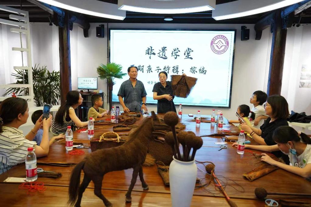 7月10日,浙江諸暨“非遺學(xué)堂”暑期親子活動(dòng)中,棕編工藝傳承人壽洪正在授課。(圖片由諸暨市委宣傳部提供)
