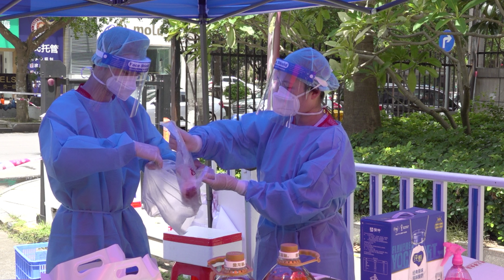 “最早一批的物資基本在凌晨3點(diǎn)到早上6點(diǎn)之間就會(huì )送達我們的服務(wù)點(diǎn),志愿者對物資進(jìn)行分類(lèi)、消殺后再供居民選購,有時(shí)候一天會(huì )配送三四次?!秉S晶說(shuō)。