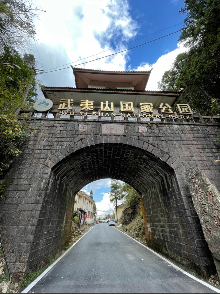 “武夷山國家公園”七個(gè)鎏金大字立在桐木關(guān)關(guān)樓之上,格外引人注目。